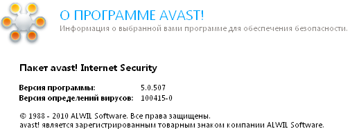 Скачать программу Avast! Internet Security 5.0.507 Final (46,42 МБ):