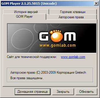 GOM Player - бесплатный мультимедиа плеер для Windows. Отличительной особенностью данного плеера является способность проигрывать большинство медиа-файлов без необходимости в сторонних кодеках, благодаря встроенной поддержке большинства популярных кодеков. Кроме того имеется уникальная возможность проигрывания повреждённых или недозагруженных файлов. Плеер понимает все распространенные форматы музыки и видео благодаря встроенным кодекам, устанавливаемым в комплекте с самой программой. Если же кодек для воспроизведения не найден, то программа предложит воспользоваться сторонним, установленным в системе, либо скачать соответствующий в интернете. Отличительной особенностью так же является наличие функции перемотки по кадрам, значительно увеличивающей скорость перемотки.