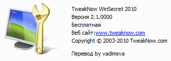 Скачать программу TweakNow WinSecret 2010 v2.1 + Rus (8,02 МБ):