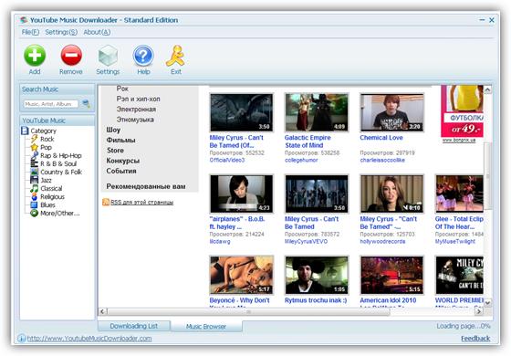 Youtube Music Downloader - простая в использовании программа для скачивания HD/HQ видеороликов с портала youtube и конвертации их в такие форматы, как MP3, AVI, WMV, MOV, MP4, 3GP. Вы сможете скачать тысячи видеороликов с сайта youtube и слушать их на своем MP3 плеере или iPod и смотреть их на iPod, iPhone или компьютере. Неограниченные возможности скачивания видеороликов! Начните прямо сейчас!