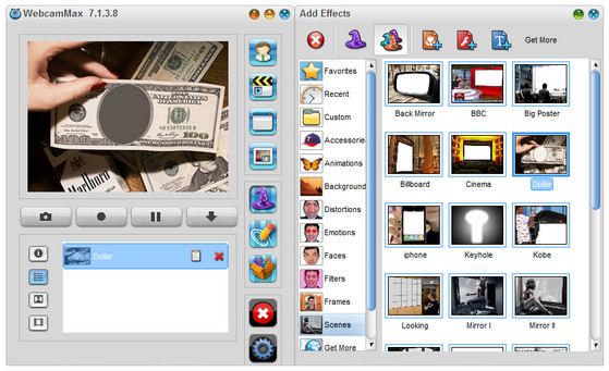 - More than 1,000 effects at www.webcammax.com, including Mosaic, TV wall, Movie scene, Water, Smog, Emboss, Emotions and etc