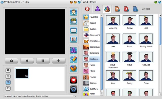 WebCamMax - продвинутая утилита для работы с веб-камерой. Программа, добавляющая изумительные видеоэффекты на все вебкамеры, даже без реальной камеры. Программу можно использовать по умолчанию в таких приложениях, как ICQ, AIM, MSN, Camfrog, Skype, Paltalk, Yahoo, ANYwebcam, Stickam. Можно настроить WebcamMax Full так, чтобы она начинала функционировать и вести трансляцию с камеры только в том случае, когда объектив зафиксирует движение.