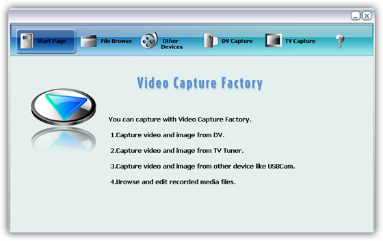 - Capture video or image from other devices like USB webcams, TV tuner and DV in real time