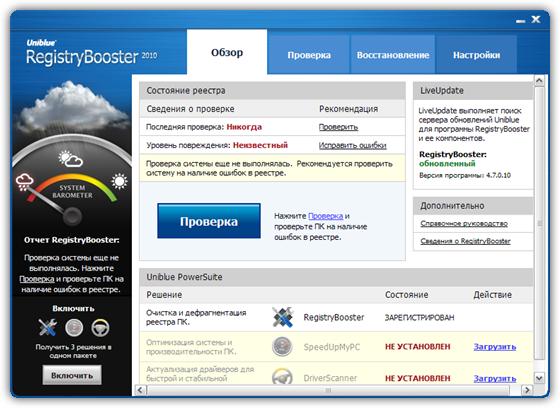 Скачать программу Uniblue RegistryBooster 2010 v4.7.0.10 (4,70 МБ):
