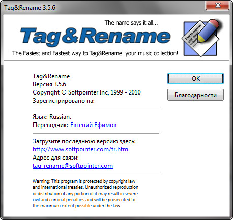 Скачать программу Tag&Rename 3.5.6 (3,27 МБ):