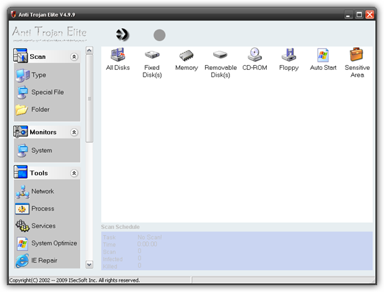 Anti-Trojan Elite - программа для удаления всевозможных троянов и keylogger, которая также поможет обезопасить вашу работу на компьютере. Утилита может сканировать, в поисках опасных файлов, жесткий диск или память ПК, обладает встроенным сетевым менеджером для мониторинга протоколов, имеет менеджер запущенных процессов, позволяет создавать резервные копии удаляемых файлов. Кроме того, присутствует модуль оптимизации работы ПК, функция обновления программы через Интернет, имеется поддержка работы со сжатым файлами, защита реестра и т.д.