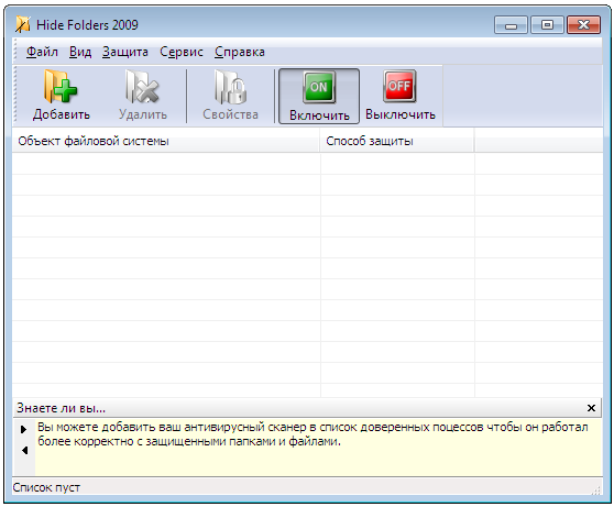 Скачать программу Hide Folders 2009 3.4.19.609 (2,4 МБ):