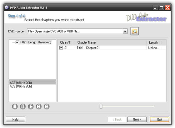 - The audio playback/preview feature allows you to listen to the selected chapters, so that you can be sure those chapters are really what you wanted to extract. You can also use DVD Audio Extractor as a standalone Audio Player for DVD-Video discs.