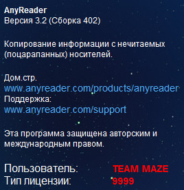 Я помню в какойто старой версии был глюк, вставляешь нормальный диск не поцарапанный и копируешь с AnyReader, а она находит штуки 4 BAD блоков