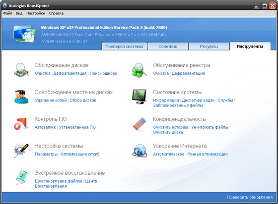 Auslogics BoostSpeed - идеальное решение проблемы оптимизации Вашего компьютера. Это мощное средство по настройке Вашей системы наиболее оптимальным способом, очистке Вашего реестра и диска, а также оптимизации Ваших программ. Программа содержит набор из более чем 18-ти утилит, способных очистить, ускорить и решить проблемы Вашего компьютера.