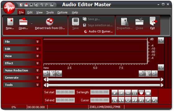Audio Editor Master - визуальный многофункциональный аудио редактор. Программа позволяет выполнять множество различных операций с аудио данными. Вы можете конвертировать аудио форматы во всех популярные форматы, а также записывать аудио компакт-диски с музыкальными файлами. И Вы можете также использовать его для извлечения и преобразования звуковых файлов с CD, конвертировать текст в речь, редактировать аудио файл информации и многое другое.