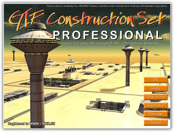 GIF Construction Set - мощная программа для создания анимированных GIF файлов. Включает в себя генератор баннеров с различными текстовыми эффектами, позволяет конвертировать GIF файлы в форматы AVI, MOV и SWF. Хорошо продуманный интерфейс и наличие большого количества специальных инструментов, команд, эффектов и переходов дает возможность создать анимацию как начинающему, так и опытному пользователю. Специальный инструмент для сжатия графических данныъ позволяет минимизировать размер анимационного GIF-файла при помощи нескольких методик. Программой предусмотрена возможность открывать и сохранять файлы в формате AVI, а также применять различные цветовые палитры. Главным преимуществом анимированного GIF была и остается простота разработки и редактирования. Программа будет полезна для создания анимированных баннеров, кнопок и аватаров для форумов и ICQ.