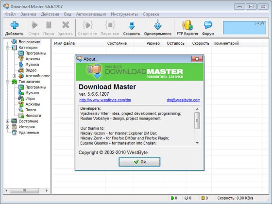 Создан компанией WestByte специально для русскоязычных пользователей. Для остальных пользователей выпускается под именем Internet Download Accelerator (IDA) и лицензией shareware.