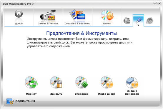 - Автодетектирование типа диска – программа коррекции типа диска автоматически открывается для авторинга, редактирования либо прожига.