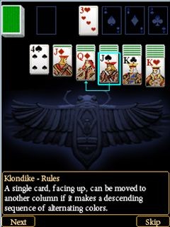 12 видов пасьянсов в одной игре. Это игра для начинающих, а также для настоящих любителей пасьянсов. Играйте в любимые карточные игры всегда и везде. Выберите один, который соответствует вашим способностям и предпочтениям! Вы также можете выбрать одну из 6 графических тем карточного стола. С интуитивно понятными элементами управления и подсказками вы можете стать настоящим мастером раскладки пасьянсов! Размеры экранов: 128x160, 176x208, 176x220, 240x320, 240x432, 320x240, 360x640.