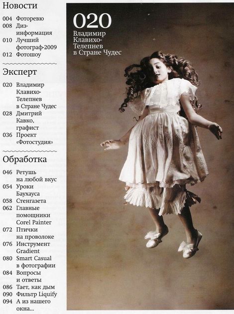 Журнал как для новичков, так и для продвинутых фотографов и дизайнеров. В журнале легким и доступным языком рассказывается о приемах съемки и о последующей обработке полученных снимков, о том, как исправить мелкие дефекты, создать коллаж и при желании даже стилизовать ваши снимки под работы любимых художников, как на все сто использовать возможности, заложенные в графических программах.