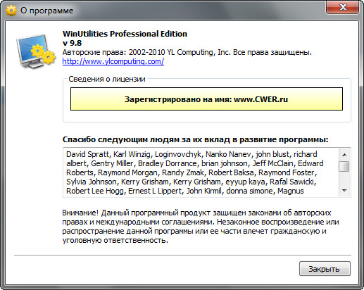 Скачать программу WinUtilities Pro 9.8 Rus (7,24 МБ):