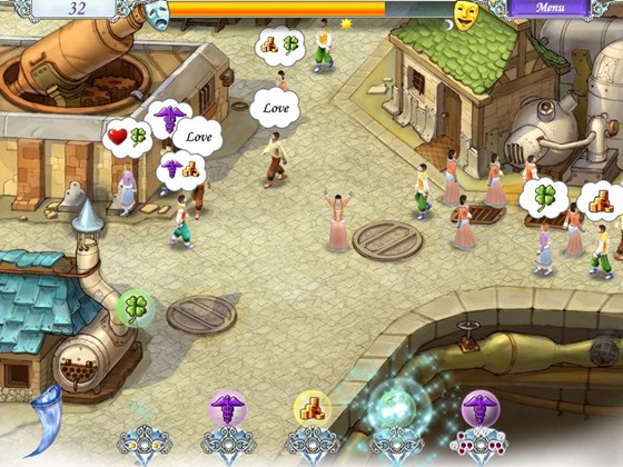 Вместе с юной волшебницей вам нужно внимательно следить за настроениями своих подопечных. Если кто-то расстроится, немедленно активируйте один из пяти генераторов чудес. Каждый волшебный кубок исполняет одно человеческое желание, остается правильно их распределить между поселянами.