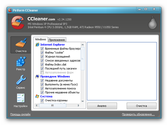 CCleaner, в зависимости от настроек, чистит следующие компоненты Windows: