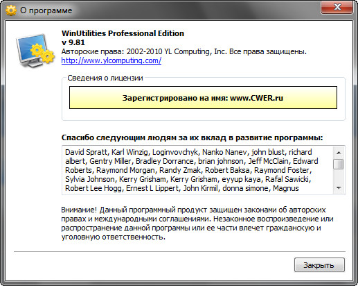 Скачать программу WinUtilities Pro 9.81 Rus (7,06 МБ):