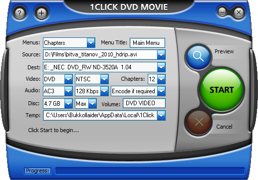 1Click DVD Movie - программа для конвертирования видео файлов в DVD формат (DVD, VCD или SVCD). Утилита поддерживает работу с большинством популярных форматов, включая AVI, DivX, XviD, MPEG1, MPEG2, QuickTime, ASF, WMV и файлы XP Media Center.