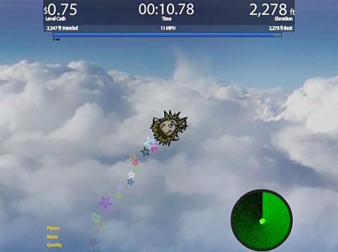 Основная задача отправить космического ежика на родину. Используйте реактивный ранец, собирайте разные бонусы. На полученные деньги делайте апгрейд.