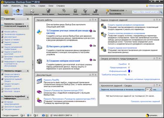 Backup Exec предоставляет простой в использовании интерфейс и панель календаря, позволяющую быстро отслеживать задания резервного копирования и восстановления. Кроме того, Backup Exec упрощает процедуру установки и резервного копирования за счет применения функции предварительной проверки среды, которая выявляет потенциальные неполадки перед установкой программного обеспечения. Продукт обладает множеством высокопроизводительных агентов и компонентов для расширения среды Backup Exec и защиты важных приложений Microsoft или операционных систем других производителей.