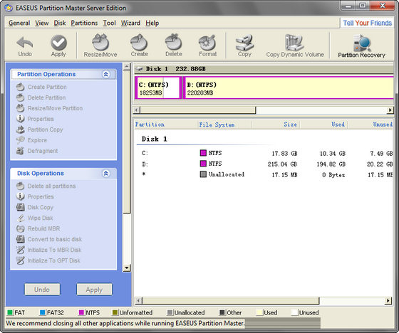 EASEUS Partition Master — удобная программа для разбиения жёсткого диска на разделы, которая не только упростит рутинные задачи, но и поможет вам редактировать разделы диска и управлять ими. А именно — быстро и с лёгкостью создавать, удалять и форматировать разделы, изменяя их размер и расположение без потери данных, с использованием свободного места на диске. С помощью этой программы, вы можете создавать, удалять, форматировать разделы на вашем жестком диске быстро и просто. К наиболее привлекательной функции относится способность изменения размера/перемещение ваших разделов, используя свободное место, без удаления данных.