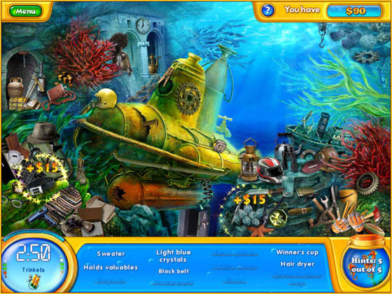 В этой увлекательной игре вы займетесь обустройством аквариумов и поиском ценных предметов на дне моря. Редкие вещи можно выгодно продать коллекционерам, чтобы купить все необходимое оборудование. Вас ждет уникальная смесь экономического симулятора и головоломки жанра "я ищу"!