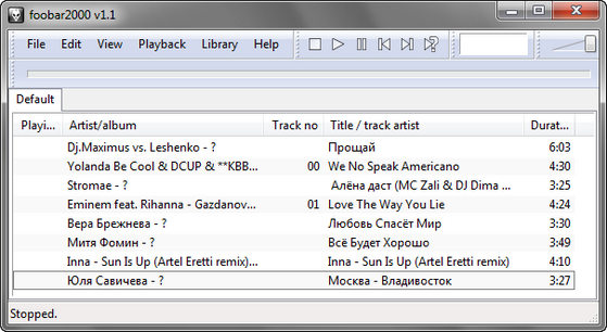 foobar2000 - аудиоплеер, основные черты которого качественный звук, широкие возможности настройки, спартанский интерфейс и низкие системные требования. Foobar проигрывает файлы форматов MP1, MP2, MP3, MP4, MPC, AAC, Ogg Vorbis, FLAC / Ogg FLAC, WavPack, WAV, AIFF, AU, SND, CDDA, WMA (lheubt форматы могут поддерживаться при установке соответствующих плагинов). Имеется полная поддержка unicode. В программе использован новый формат плейлистов (m3u8) и поддерживается чтение APEv2-тэгов из файлов MP3 (id3v2 не поддерживается).