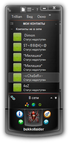 Trillian - универсальный клиент для передачи сообщений через серверы ICQ, AIM, IRC, Yahoo и MSN Messenger. После его установки можно будет обмениваться сообщениями сразу во всех перечисленных сетях без установки самих программ ICQ, AIM и т.д. Доступны такие возможности, как зашифрованный чат (как двухсторонний, так и в режиме конференции), поддержка множественных ICQ/AIM одновременных сессий, мультисерверные соединения, звуковые эффекты, поддержка скинов (через XLM) c возможностью подстройки (вроде прозрачного фона).