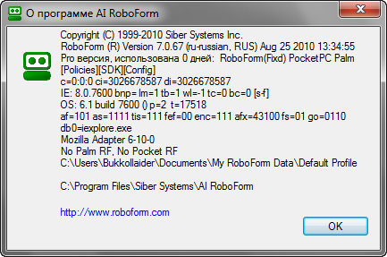 AI Roboform Pro - программа, являющаяся менеджером паролей и заполнителем веб-форм, полностью автоматизирующей ввод паролей и заполнениe форм. С помощью этой программы персональные данные пользователя вводятся один раз и потом любая форма на любом сайте заполняется одним нажатием кнопки. Программой поддерживается заполнение форм на различных языках, в том числе и на русском. RoboForm может прочитать и заполнить любую форму, даже ту, которую он раньше не видел. Практически, данная программа делает то же самое, что и человек при заполнении формы - распознает, обрабатывает и заполняет форму. Программа устанавливается и работает в качестве плагина с браузерами Internet Explorer, Maxthon, Netscape, Mozilla, Firefox и обладает многоязычным интерфейсом с поддержкой русского языка.