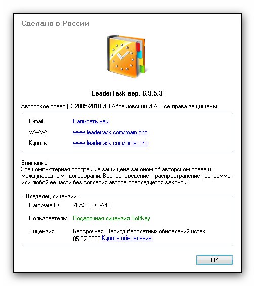 Скачать программу LeaderTask 6.9.5.3 (6,19 МБ):