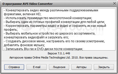 Скачать программу AVS Video Converter 7.0.1.449 (61,26 МБ):