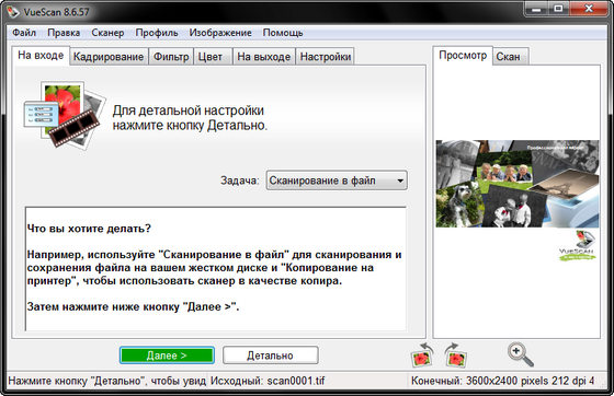 VueScan Pro - программа для работы со сканерами HP, Minolta, Nikon, Polaroid, Epson, Canon и другими. Может работать с внутренней глубиной цвета. VueScan поддерживает автоматическую и ручную настройку большинства параметров и пакетный режим сканирования. Поддерживается более 500 моделей сканеров с определенным перевесом в сторону слайд-сканеров — Nikon, Minolta, Polaroid, Microtek, Epson. Предусмотрено автоматическое удаление дефектов изображения за счет канала инфракрасного сканирования и многопроходное сканирование с последующим усреднением результата — для подавления собственных шумов сканера. Имеются фильтры подавления зерна, нерезкого маскирования и удаления паразитного оттенка оригинала. Есть средства ручной корректировки динамического диапазона и градационной характеристики (независимо по каналам R, G, B).