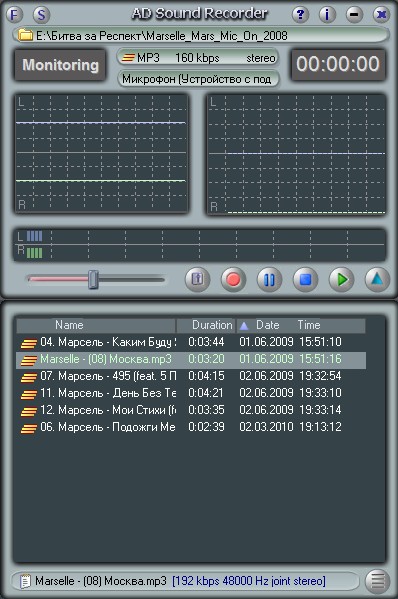 AD Sound Recorder - небольшая программа для записи аудио. AD Sound Recorder поддерживает три вида форматов звуковых файлов - WAV, MP3 и WMA. С AD Sound Recorder Вы сможете записать звук с микрофона, потоков аудио из Интернета, или музыку, которая проигрывается Winamp, Windows Media Player, Quick Time, Real Player, Flash, games, и т.д. не теряя качества. AD Sound Recorder предоставляет зрительные образы входящего звука. Вы можете настроить громкость записи, приостанавливать или возобновлять запись по своему желанию.