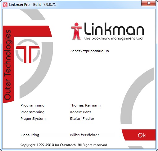 Вы сможете с легкостью добавлять в нее ссылки из всех окон браузера с автоматическим назначением ключевых слов и описания к добавляемой ссылке. Вы также сможете проделывать импорт и синхронизацию из существующих коллекций закладок, а также экспортировать закладки в различные форматы. Даже сможете создавать ваши собственные шаблоны для экспорта. В программе уже имеется несколько примеров шаблонов для экспорта в форматы XML и HTML. Linkman Pro поддерживает множество версий десяти основных браузеров Windows: Internet Explorer 3.x-8.x, Google Chrome, Firefox 1.x-3.x, K-Meleon 1.x, Maxthon, SeaMonkey 1.x, Opera 4.x-9x, Avant Browser, Neoplanet, Netcaptor, SlimBrowser. Интерфейс программы представлен на 10-ти языках, включая русский.