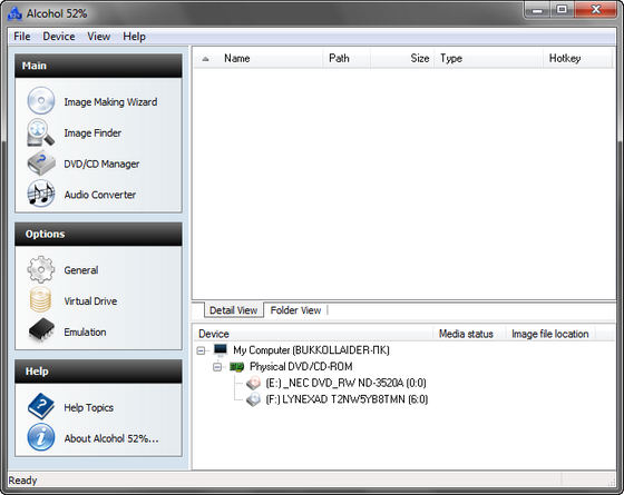 Alcohol 52% - широко известная программа для эмуляции CD/DVD приводов, которая позволяет создавать точные копии дисков и загружать их в виртуальные накопители. Бесплатная версия приложения позволяет создать 6 виртуальных накопителей, каждый из которых может работать с образами дисков на скорости 200x. Поддерживается большое количество разнообразных форматов образов дисков: MDS, CCD, BIN, CUE, ISO, NRG, CDI, BWT и другие, возможна регистрация пользовательских расширений файлов-образов. Программа будет полезна всем, кому часто приходится вставлять и вынимать различные CD/DVD диски. С её помощью можно разместить все часто используемые носители в виде образов на жёстком диске вашего компьютера.