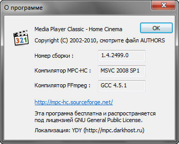 Скачать программу Media Player Classic Home Cinema 1.4.2499 x64 (5,32 МБ):