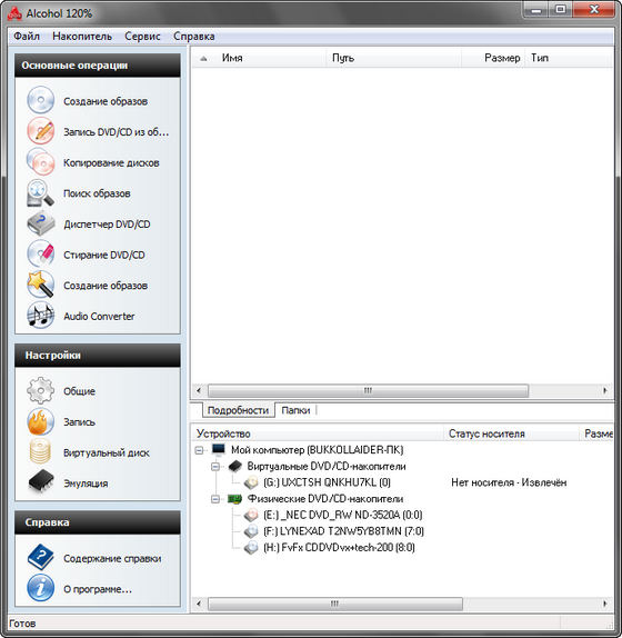 Alcohol 120% - эмулятор CD/DVD-дисков. Программа создает на жестком диске ПК пользователя образ диска с данными, аудио или видео информацией, а затем предоставляет доступ к этим данным другим программам так, словно искомый диск находится в приводе. Alcohol 120% поддерживает работу со многими форматами CD/DVD, имеет возможность работы с 31 образом одновременно, обеспечивает несоизмеримо большую (по сравнению с CD) скорость передачи данных между приложением и образом диска. Alcohol 120% может работать с большинством известных файлов-образов, эмулирует работу 200х скоростного CD-ROM, есть поиск образов, еще одна положительная черта - программа может копировать защищенные диски, обходить защиту SafeDisc, StarForce (частично), Securom и LaserLock.
