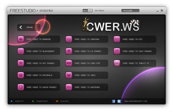 Free Studio - это единый пакет, включающий все бесплатные мультимедийные приложения, разработанные DVDVideoSoft. Free Studio Manager состоит из следующих разделов, позволяющих быстро найти любое из приложений: YouTube программы; MP3 и Аудио; CD, DVD и BD; DVD и Видео; Фотки; Мобилки; Устройства Apple; 3D программы.