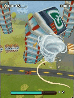 В новой 3-х версии java-игры Вам дается возможность осуществить свой природный апокалипсис. Вы можете распоряжаться торнадо. Накапливайте энергию для увеличения разрушающей силы. Ваша задача – разрушить всё. Покажите всю силу природы. Размеры экранов: 128х128, 128x160, 176x208, 176x220, 240x320, 320x240, 352x416, Мультискрин.