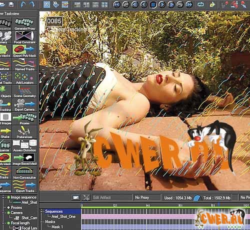 Трекинг объектов - при небольшой величине параллакса бывает трудно получить хороший результат; Boujou позволяет импортировать трехмерные объекты и восстанавливать камеру по соответствию feature tracks и полигональных граней.