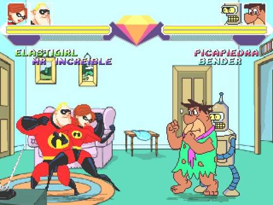 Если вы с детства мечтали убить Спанч Боба, или набить морду Патрику Гомером, то эта игра для вас! 32 игровых персонажей и 15 обширных уровней. Эта игра по-своему уникальна и неплохо выделяется из ряда стандартных M.U.G.E.N. - файтингов. Играть можно и на джойстиках. В игре присутствуют 3D модели. Например-объемный Гомер.