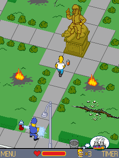 В игре в роли Гомера предстоит спасти себя и любимый Спрингфилд от неминуемой гибели. А помогают Гомеру в этом сын Барт и верная розовая свинка. Главный герой путешествует по городу в 3 различных локациях, выполняет квесты, катается и преодолевает преграды на скейтборде, успевая увиливать от атак недружелюбных сограждан, полиции, собственных клонов, клубов пара и языков пламени, вырывающихся из разбитых труб. Размеры экранов: 128x128, 128x160, 132x176, 176x208, 176x220, 240x320.