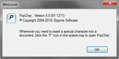 PopChar - утилита представляющая собой всплывающее окно, которое может располагаться поверх всех остальных окон и выводить таблицу различных символов, которые пользователь может вставить в текст любого документа. Кроме стандартных букв и чисел, клавиатура имеет множество других знаков, применяющиеся повсеместно, но которые не всегда можно легко вставить в текст. Для использования многих из них, требуется запомнить сложные комбинации клавиш, о которых вы можете просто не знать. Вот почему программа PopChar так полезна. Она позволяет вам вставлять спецсимволы в свои тексты на ходу, не теряя времени на подбор различных комбинаций клавиш или поиск их в интернете. Просто с помощью мыши выберите необходимый символ, и он может быть скопирован куда угодно - будь то текстовый редактор или email клиент. Программа может быть запущена определенной комбинацией клавиш и закрывается немедленно, сразу после вставки символа.