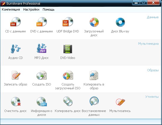 BurnAware Professional - простая и в тоже время мощная программа для записи и копирования любых дисков - CD, DVD, Blu-Ray и HD-DVD, а также копирования CD и DVD. Программа позволяет выполнять все основные задачи по записи: работа с носителями CD/DVD, Blu-Ray; запись Audio CD и DVD-Video; копирование и прожиг образов; клонирование дисков; поддержка мультисессии и многое другое. Имеется многоязычный интерфейс, включая русский и поддержка Windows Vista. В последних нескольких версиях обновлен пользовательский интерфейс, добавлены новые диалоги и опции, улучшена поддержка специальных символов, добавлены и обновлены локализации интерфейса, исправлены проблемы с созданием некоторых типов дисков, а также значительно улучшен движок для записи носителей.