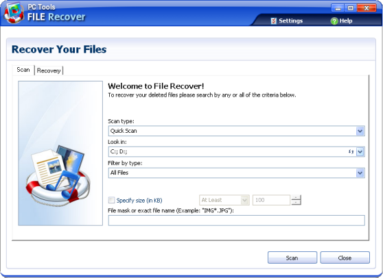 File Recover - программа, предоставляющая пользователям удобные средства для восстановления удаленных из системы файлов. Поддерживается восстановление файлов удаленных не в Корзину, стертых вирусами или программами, потерянными в результате сбоя программного обеспечения. В случае если удаленный файл был частично затерт, File Recover пытается восстановить его по имеющемуся содержимому. PC Tools File Recover работает с жесткими дисками, флоппи и другими источниками хранения данных, обладает высоким быстродействием, поддерживает пакетную обработку файлов, понимает файловые системы FAT16, FAT32 и NTFS.