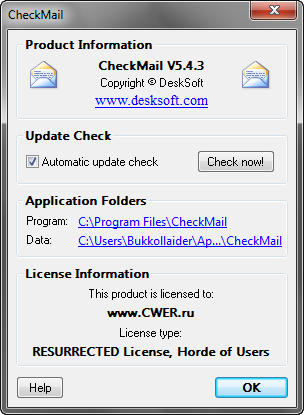 Скачать программу CheckMail 5.4.3 (0,9 МБ):