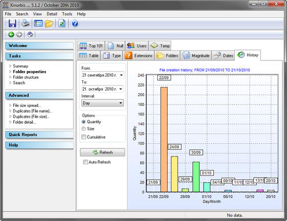 Xinorbis поможет узнать о содержимом вашего жесткого диска практически все, начиная от того, какие документы и директории занимают больше всего места, и заканчивая тем, файлов какого типа больше — системных, музыкальных или, например, графических.